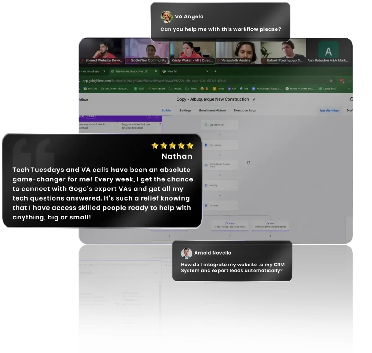 What started as help became the team that built my funnels, websites, and backend systems so my business keeps moving, whether I’m at my desk or on the beach. I get to imagine what’s next. My team makes it real.